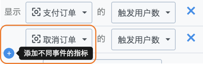 如果要对多个事件的指标进行分析,点击左侧的加号可以添加事件。